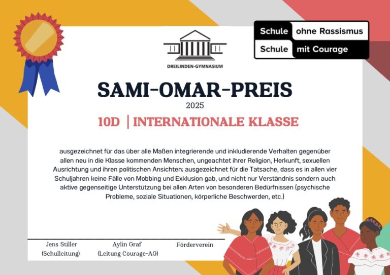 „Schule ohne Rassismus, Schule mit Courage“ – diesen Titel darf unsere Schule seit 2021 dank unseres verstorbenen Schulpaten Sami Omar tragen.